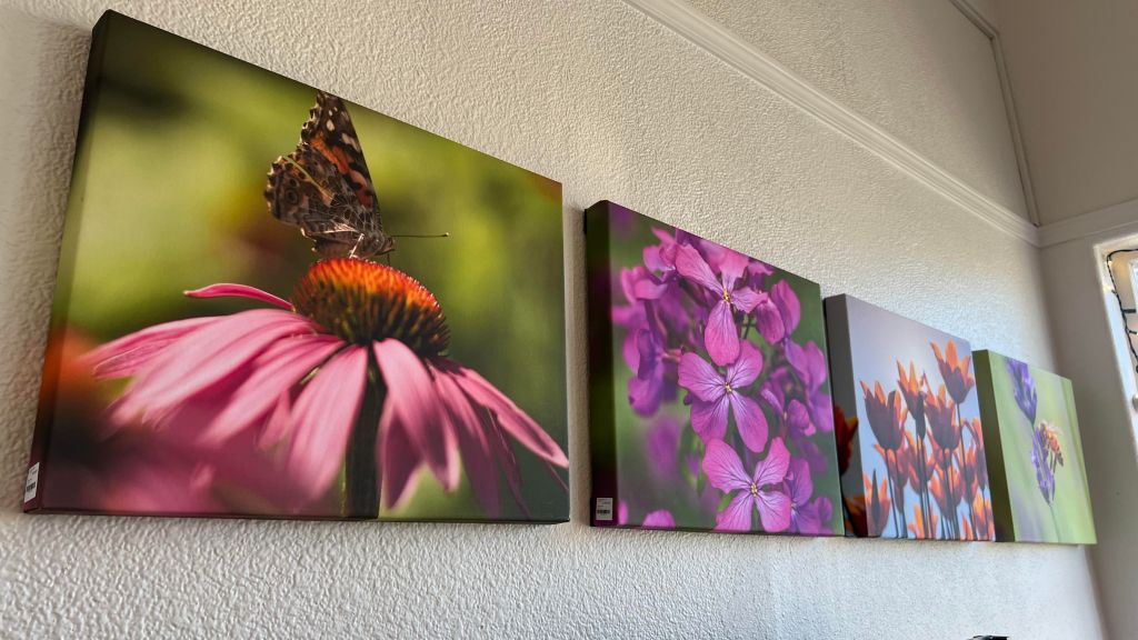 Cottage-core mixed media home decor. Ceraminc florals & mushrooms displayed in creative ways