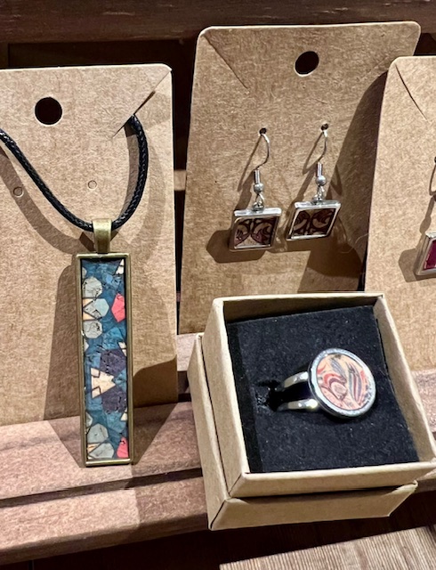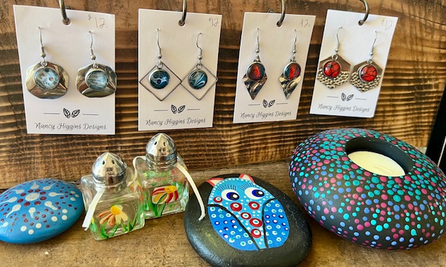 Handcrafted coffee body scrub, bath soaks, earrings, bracelets, reclaimed decor + more