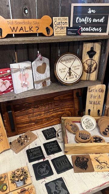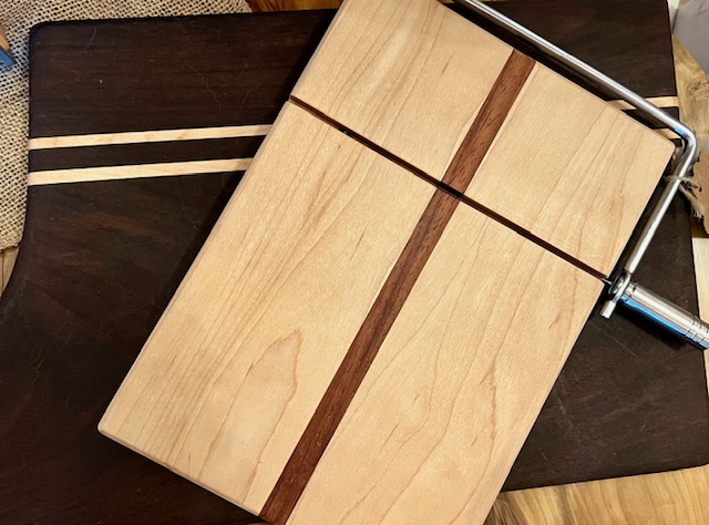 Handcrafter charcuterie boards made from all kiln-dried local wood, hand engraved + stained