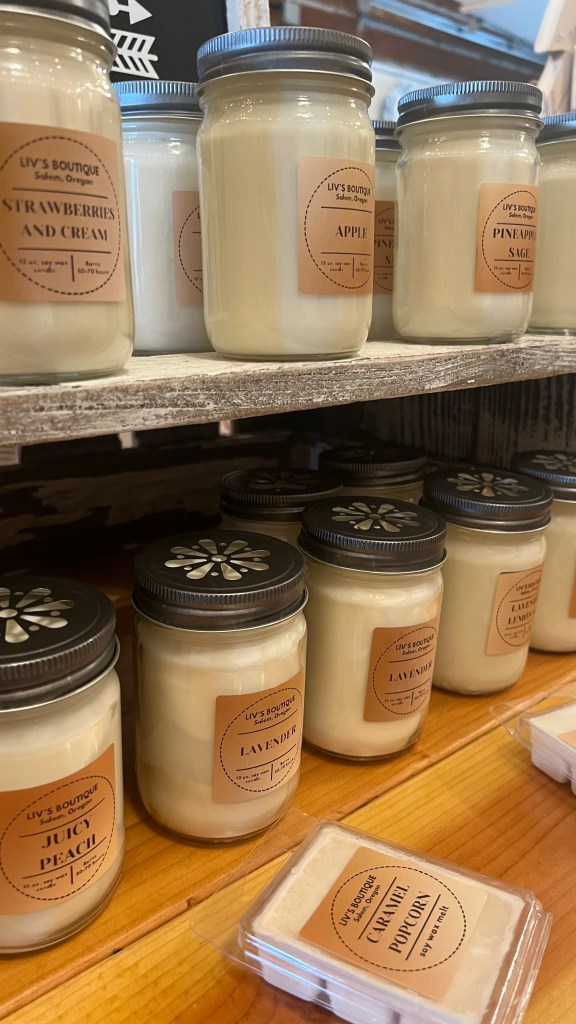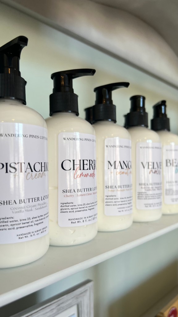 Scented wax melts, body butters + scrubs, bath bombs, lip balms, etc.
